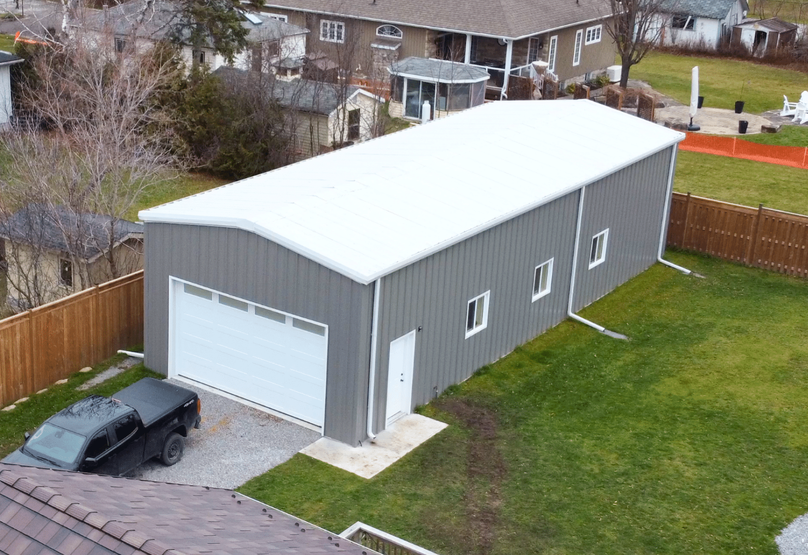This 28′ x 28′ x 10′ steel garage demonstrates how a precision-engineered footprint can transform a residential property into a professional-grade sanctuary. Designed to serve as the ultimate detached “man cave” or hobby hub, the building features a clean, neutral exterior that integrates seamlessly into a backyard setting. Fully insulated for year-round comfort, the structure offers a climate-controlled environment ideal for workshops, storage, or recreational use.